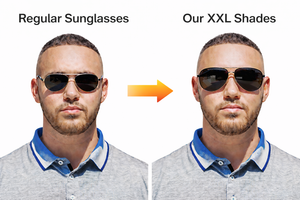 We offer sunglasses for those people who struggle finding shades that would fit their large head, without sacrificing style. Our sunglasses are wide, big and tall, and specifically designed to fit large heads. All of our sunglasses feature spring hinges for extra comfort.